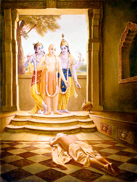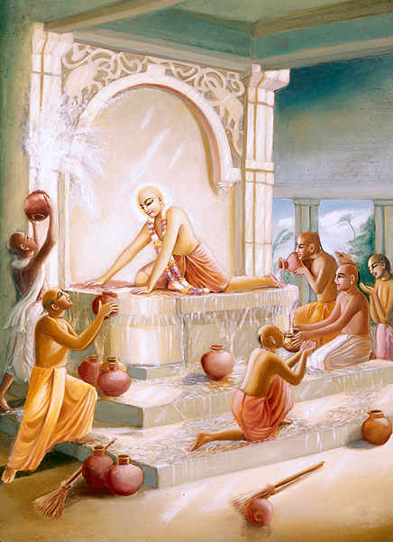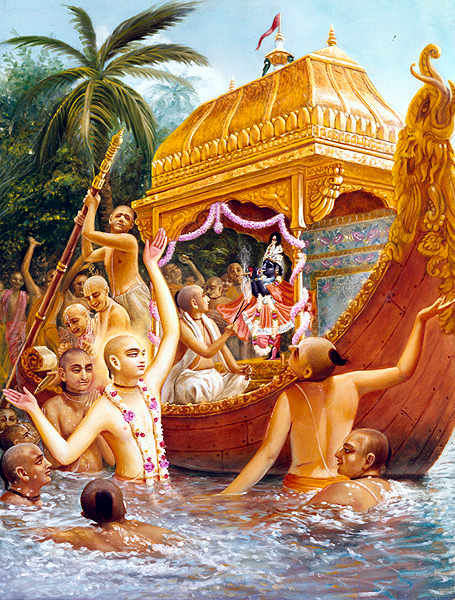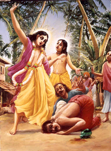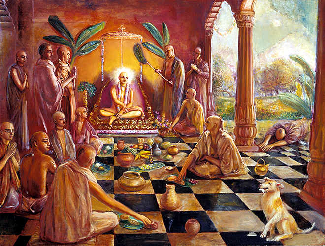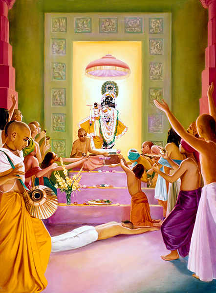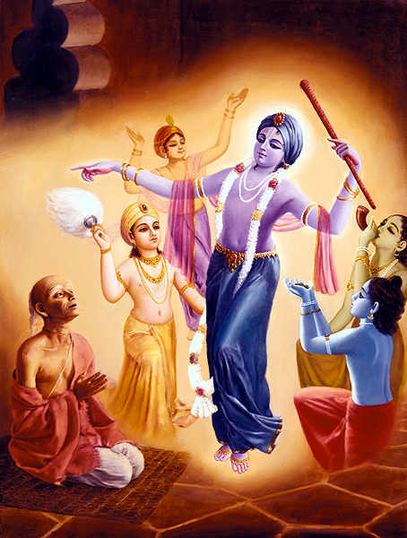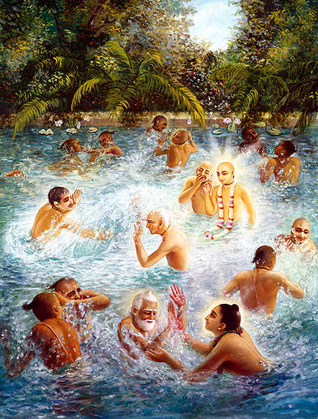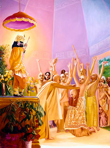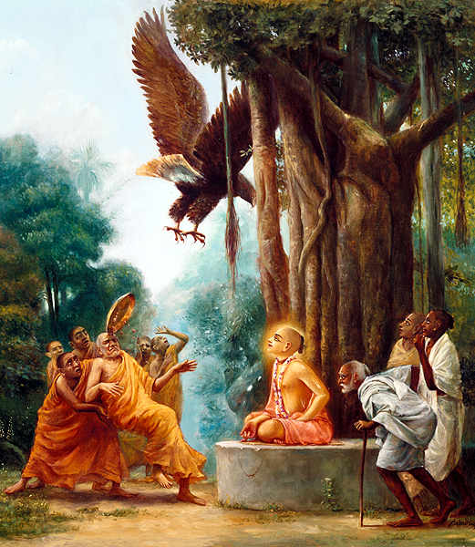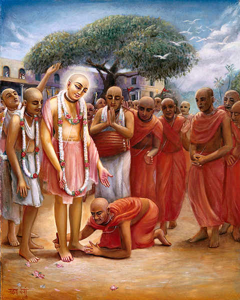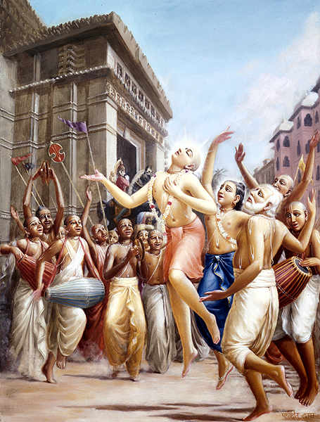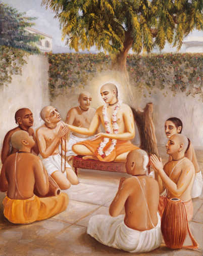 श्रेयः-कैरवचन्द्रिकावितरणं विद्यावधू-जीवनम् । आनन्दअम्बुधिवर्धनं प्रतिपदं पूर्णामृतास्वादनं सर्वात्मस्नपनं परं विजयते श्रीकृष्ण संकीर्तनम् ॥१॥ नाम्नां अकारि बहुधा निजसर्वशक्तिः तत्रार्पिता नियमितः स्मरणे न कालः । एतादृशी तव कृपा भगवन्ममापि दुर्दैवम् ईदृशम् इहाजनि नअनुरागः ॥२॥ तृणादपि सुनीचेन तरोरपि सहिष्णुना अमानिना मानदेन कीर्तनीयः सदा हरिः ॥३॥ न धनं न जनं न सुन्दरीम् कवितां वा जगदीश कामये । मम जन्मनि जन्मनि ईश्वरे भवताद् भक्तिः अहैतुकी त्वयि ॥४॥ अयि नन्द-तनूज किंकरम् पतितं मां विषमे भवाम्बुधौ । कृपया तव पादपंकज- स्थितधूलिसदृशं विचिंतय ॥५॥ नयनं गलदश्रुधारया वदनं गद्गदरुद्धया गिरा । पुलकैर् निचितं वपुः कदा तव नाम-ग्रहणे भविष्यति ॥६॥ युगायितं निमेषेण चक्षुषा प्रावृषायितम् शून्यायितं जगत् सर्वं गोविन्द-विरहेण मे ॥७॥ आश्लिष्य वा पादरतां पिनष्टु माम् अदर्शनान् मर्महतां करोतु वा । यथा तथा वा विदधातु लंपटः मत्प्राणनाथस् तु स एव नापरः ॥८॥ |