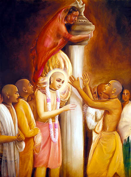 Contents Preface Text 1 Text 2 Text 3 Text 4 Text 5 Text 6 Text 7 Text 8 Text 9 Text 10 Text 11 Sri Upadesamrita sanskrit (devanagari) वाचो वेगं मनसः क्रोधवेगं जिह्वावेगमुदरोपस्थवेगम् । एतान् वेगन् यो विषहेत धीरः सर्वामपीमं पृथिवीं स शिष्यात् ॥१॥ अत्याहारः प्रयासश्च प्रजल्पो नियमग्रहः । जनसङ्गश्व लौल्यं च षड्भिर्भक्तिर्विनश्यति ॥२॥ उत्साहान्निश्चयाद्ढैर्यात्तत्तत्कर्मप्रवर्तनात् । सङ्गत्यगात् सतो वृत्तेः षड्भिर्भक्तिः प्रसिध्यति ॥३॥ ददाति प्रतिगृह्णाति गृह्यामाख्याति पृच्छति । भुङ्क्ते भोजयते चैव षड्विधं प्रीतिलक्षणम् ॥४॥ कृष्णेति यस्य गिरि तं मनसाद्रियेत दीक्षास्ति चेत प्रणतिभिश्च भजन्तमीशम् । शुश्रूषया भजनविज्ञमनन्यमन्य- निन्दादिशून्यहृदमीप्सितसङ्गलब्ध्या ॥५॥ दृष्टैः स्वभावजनितैर्वपुषश्च दोषैर् न प्राकृतत्वमीह भक्तजनस्य पश्येत् । गङ्गाम्भसां न खलु बुद्बुदफेन पङ्कैः र्ब्रह्मद्रवत्वमपगच्छतिनीरधर्मैः ॥६॥ स्यात् कृष्णनामचरितादिसिताप्यविद्या- पित्तोपतप्तरसनस्य न रोचिका नु । किन्त्वादरादनुदिनं खलु सैव जुष्टा स्वाद्वी क्रमाद्भवति तद्गदमूलहन्त्री ॥७॥ तन्नामरूपचरितादिसुकीर्तनानु- स्मृत्योः क्रमेण रसनामनसी नियोज्य । तिष्ठन् व्रजे तदनुरागिजनानुगामी कालं नयेदखिलमित्युपदेशसारम ॥८॥ वैकुण्ठाज्जनितो वरा मधुपुरी तत्रापि रासोत्सवाद् वृन्दारण्यमुदारपाणिरमणात्तत्रापि गोवर्धनः । राधाकुन्डमिहापि गोकुलापतेः प्रेमामृताप्लावनात् कुर्यादस्य विराजतो गिरितटे सेवां विवेकी न् कः ॥९॥ कर्मिभ्यः परितो हरेः प्रियतया व्यक्तिं यायुर्ज्ञानिनस् तेभ्यो ज्ञानविमुक्तभक्तिपरमाः प्रेमैकनिष्ठास्ततः । तेभ्यास्ताः पशुपालपङ्कजदृशस्ताभ्योऽपि सा राधिका प्रेष्ठा तद्वदियं तदीयसरसी तां नाश्रयेत कः कृती ॥१०॥ कृष्णस्योच्चैः प्रणयवसतिः प्रेयसीभ्योपि राधा कुंडम चास्या मुनिभिरभितस्तादृगेव व्याधायि । यत्प्रेष्ठैरप्यलमसुलभं किं पुनर्भक्तिभाजाम तत्प्रेमेदं सकृदपि सरः स्नातुराविष्करोति ॥११॥ The Bhaktivedanta Book Trust © 1972-2025. All rights reserved |